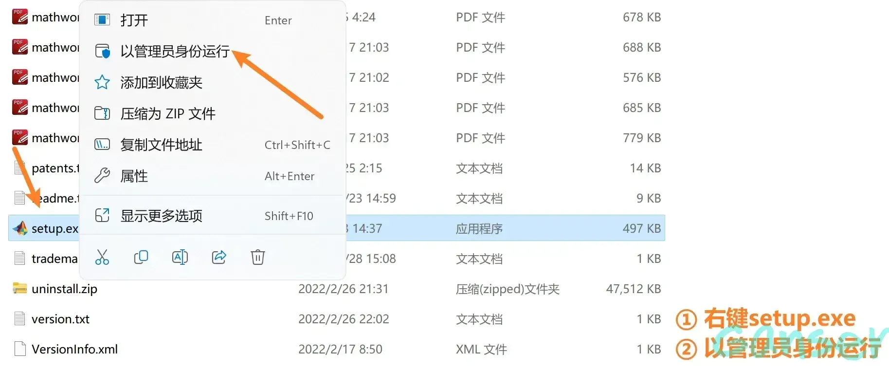 解压完成后,右击文件夹内的setup,以管理员身份运行。