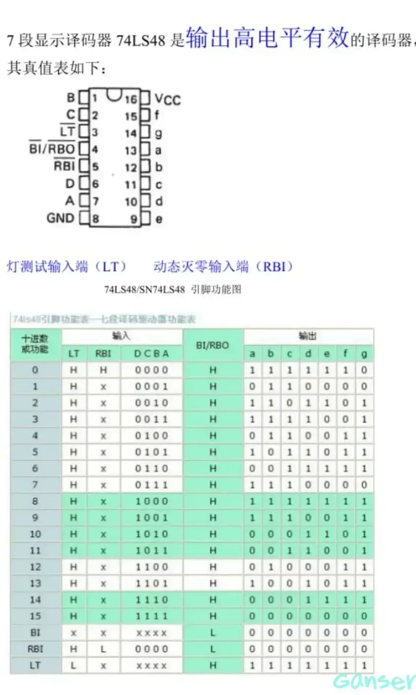 74LS48引出端符号和功能: