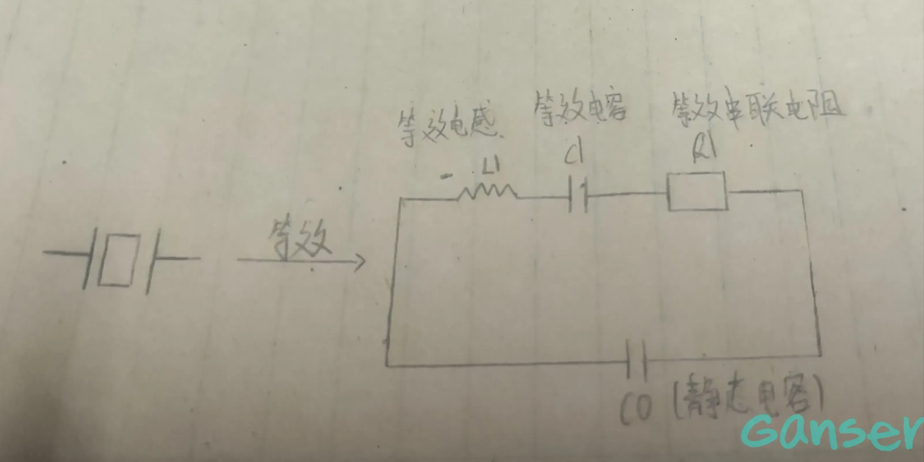 单个晶振等效为该晶振的等效电感、等效电容、等效串联电阻和静态电容的串联。