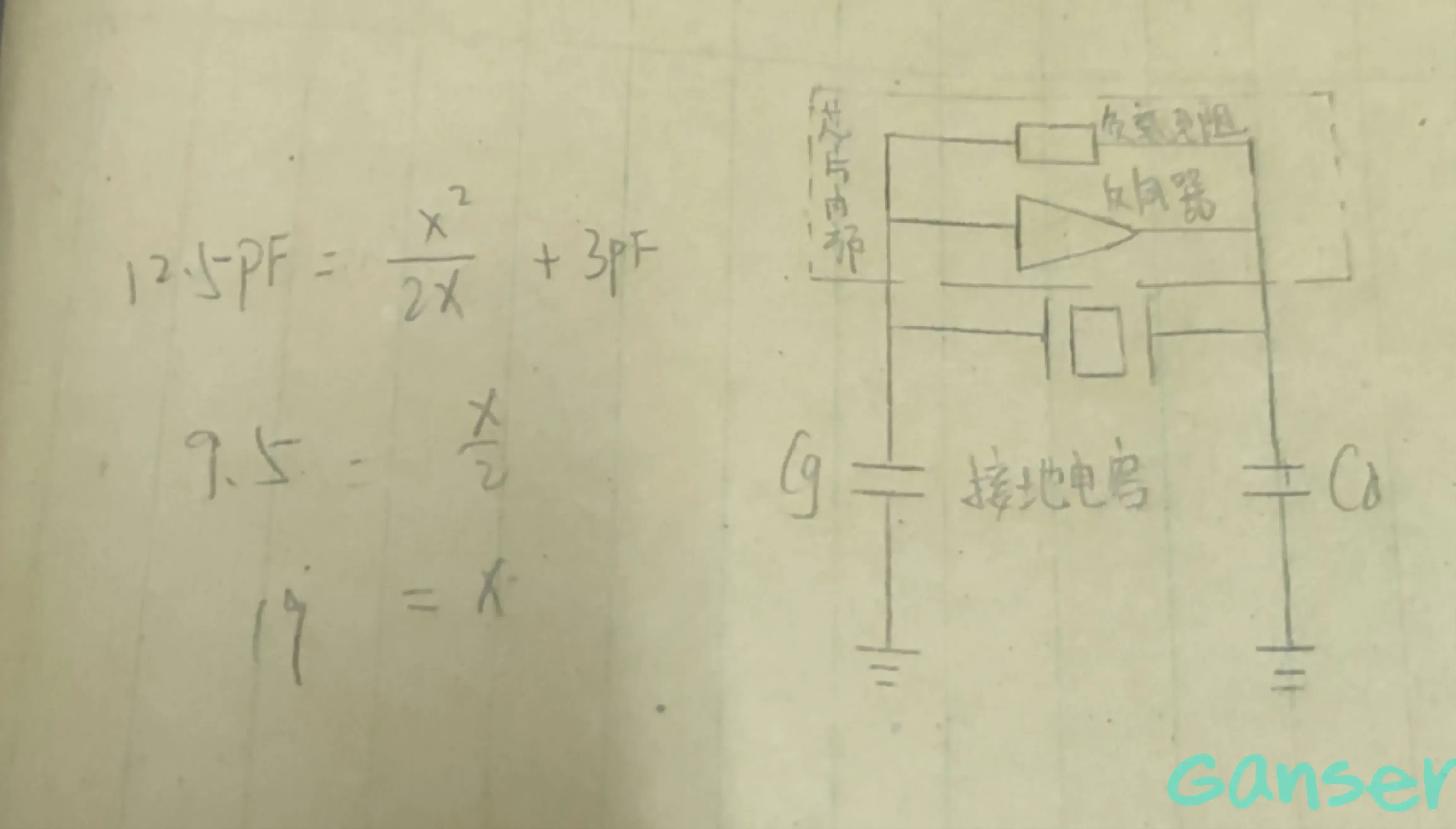 将晶振接入数字电路既可以工作在并联谐振状态,也可以工作在串联谐振状态。工作于晶体并联谐振状态的门电路振荡器如下图。根据计算公式:$ Cl=\frac{Cg*Cd}{Cg+Cd} +Cs $,其中Cl为晶体标称负载电容,Cs为PCB杂散电容一般取3-5pF,且一般的接地电容选择Cg=Cd。因此根据我们常见的32768Hz晶振的负载电容为:12.5pF,根据算我们可以知道我们选择19pF的接地电容是合适的。