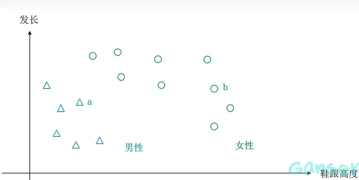 假设待分类样本距离已知样本的距离最近,我们认同待分类样本与已知样本属同一类(男性)。反之,若距离已知样本距离最近则认同待分类样本与同类为女性。(以上均为最近邻)。