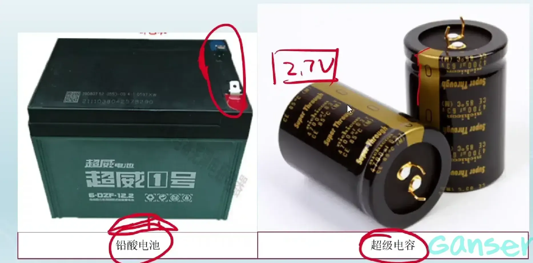 超级电容,其容值贼大并且能够储能,因此可以当作电源使用,在比赛中的节能组常常见到使用该电容充当电源,切记电容的击穿(耐受)电压为2.7V,要保护该电容不能让其击穿。